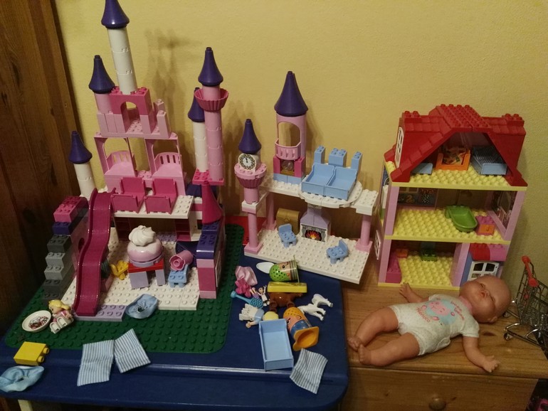 Я своей в 3,9 купила набор с маленьким самолетом и с полицейским. Хорошо так играла. Домиком как раз уже один раз в 3 месяца, а ими прямо отлично.