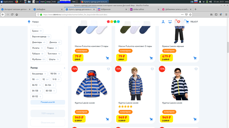 МаХаКа в Выбор товаров 6 лет кибер дни Дет.мир Распродажи. Скидки. Акции. https://cyberdays.detmir.ru/lastmonth/?_ga=2.136197041.1634886588.1564987359-3614688.1556727663 Посмотрите еще 20 записей на эту тему Отменить Ответить Евгения На мальчиков Лесси-это ветровки или 80 гр? 05.08.2019 Ответить наталья Показывает что уже ничего нет нормального 05.08.2019 Ответить Лёлька Их и позавчера уже не было, без киберцены! 05.08.2019 Ответить Снижение цены на WB Hm скидка Чаты Беременных Выберите чат: Январята-2026 Февралята-2026 Мартята-2026 Апрелята-2026 Майчата-2026 Июнята-2026 Июлята-2026 Августята-2026