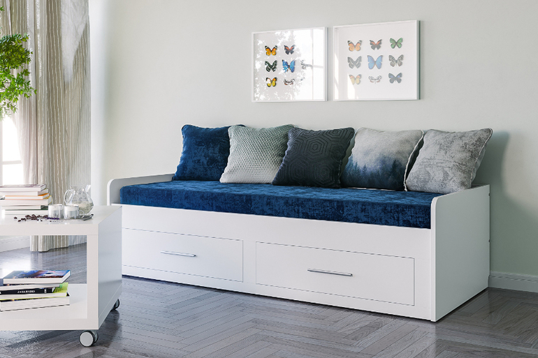 Детская комната : мебель, постельное белье, предметы интерьера и аксессуарыДевочки!Может есть обладательницы этой кровати или видел их вживую?А может даже есть такие которые сравнивали ее с икеевской кушеткой Бримнэс?Хотела купить дочке Бримнэс,но что-то много отзывов о том, что кровать быстро облупливается и ломаются ламеля.Фото под кат. Если есть обладатели Бримнэс,скажите, дети не ударяются об ручки ящиков?