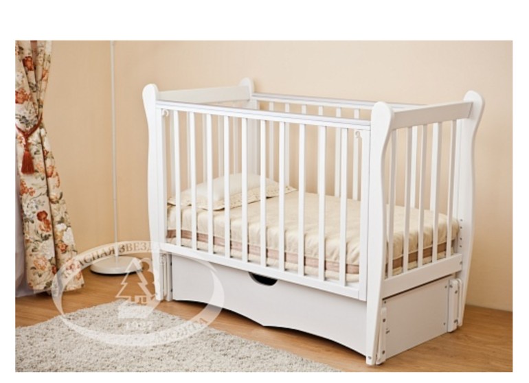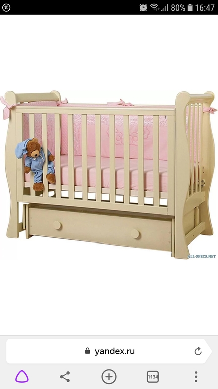У нас такая в цвете слоновая кость. Хорошая кроватка, крепкая, ящик удобный для игрушек. Дочка не особо в ней спит сейчас, с нами. Когда родилась мы сняли борт и приставили кроватку к своей кровати, удобно было кормить. Сейчас дочку укладываем и она ночью к нам перелизает, так и стоит приставная 😀