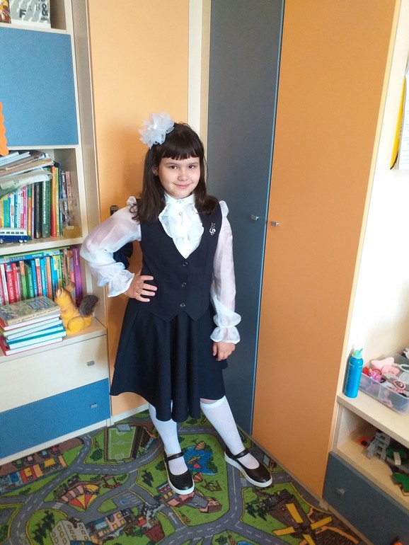 Юбки перестала носить в 3 классе. Только на концерты, где обязательно белые колготки. Платья, сарафаны не носим изначально.