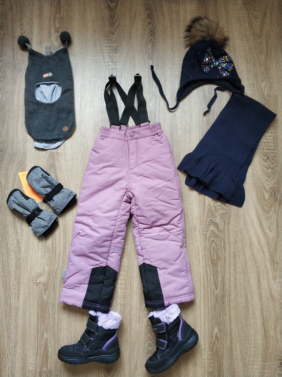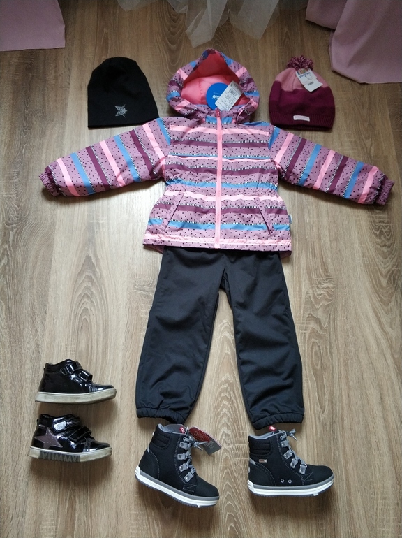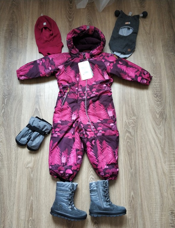 4) от 0 до -15. Комбинезон Reima Reimatec Puhuri (2793), шлем фуксия Reima, шерсть на хлопке (818), шлем Nels (1289) будем носить второй сезон, краги hm (375), есть еще 3 пары краг с прошлого года, ближе к сезону станет понятно, малы или еще пойдет, пока все хороши, Сапоги Superfit (3060).