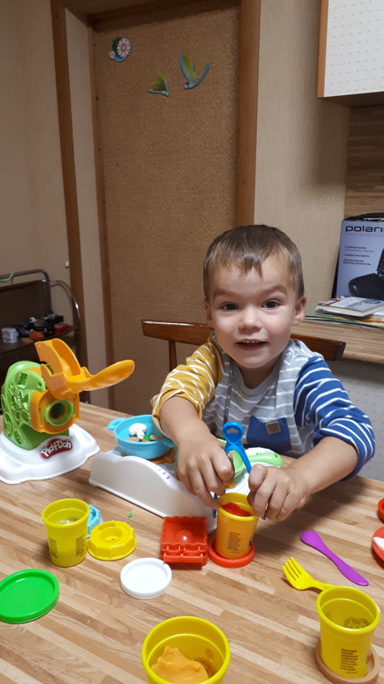 Если вы зубы будите лепить, сверлить вместе то зубастик норм, а с набором готовим лет до 6ти играть будет. У нас куча, зубастик в 3,4 очень нравился, а готовит с подружками до сих пор