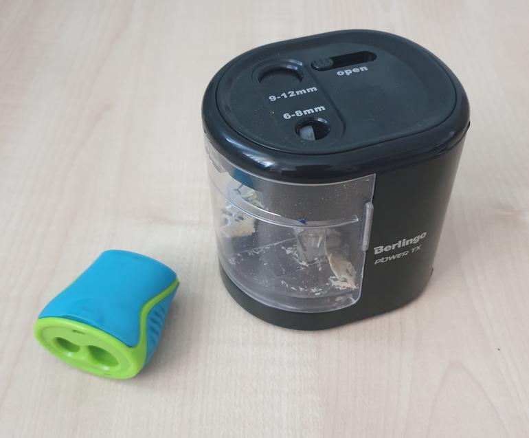 По точилкам главные условия: наличие контейнера и отверстия для разных диаметров карандашей.