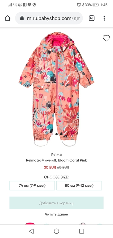 А размеров 68-74 вроде нет таких, плюс вам он через пару месяцев мал будет.