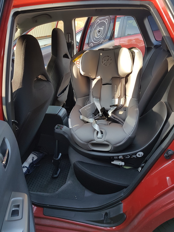 У меня такое. Машина кроссовер, стоит за пассажиром. Когда развернуто по ходу, то места пассажиру много, когда против хода, то немного теснее. Но в общем, оно мне кажется компактным, до этого брала dаiichi first 7, оно огромное по сравнению с sirona s.