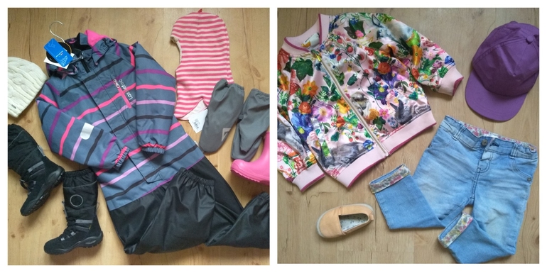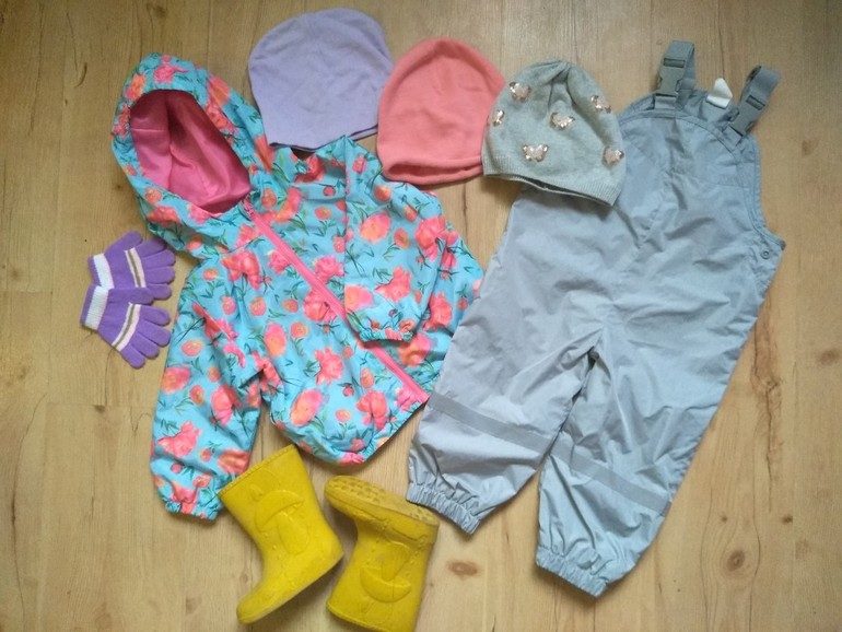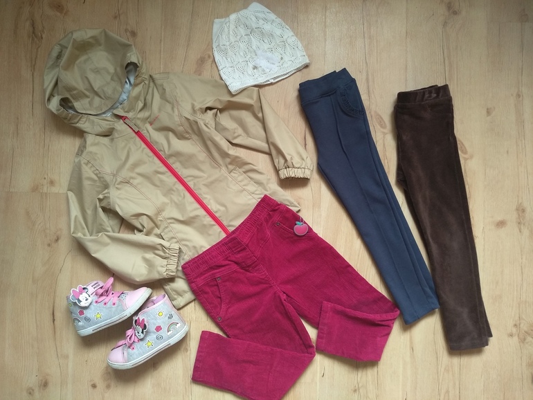 Ребенок №1, 5лет, рост 105-106. Аккуратная, не особо активная, пачкаться специально не любит(хотя проехаться на горке в белой юбке может)), лужами брезгует, по 3 часа под дождём мы не гуляем. Отсюда и набор вещей.