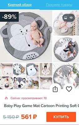 Интернет-магазины России и стран СНГПривет, скачала приложение виш (wish). Цены небольшие, товары разнообразные. Но приложение для меня неизвестное. Кто-то что-то брал? Вот коврик для малыша симпатичный