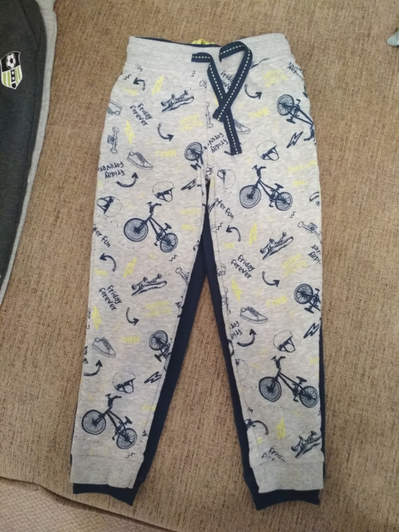 Это штаны ineXtenso из Ашана, для сада и песочниц мне очень нравятся, размер 6 обе пары, одни с витрины, другие 1 раз постирались при 20 градусах и высохли при режиме "Очень сухое" (это единственный режим, который у нас не оставляет вещи влажноватыми, сразу в шкаф можно).