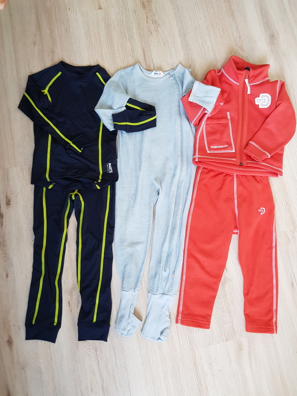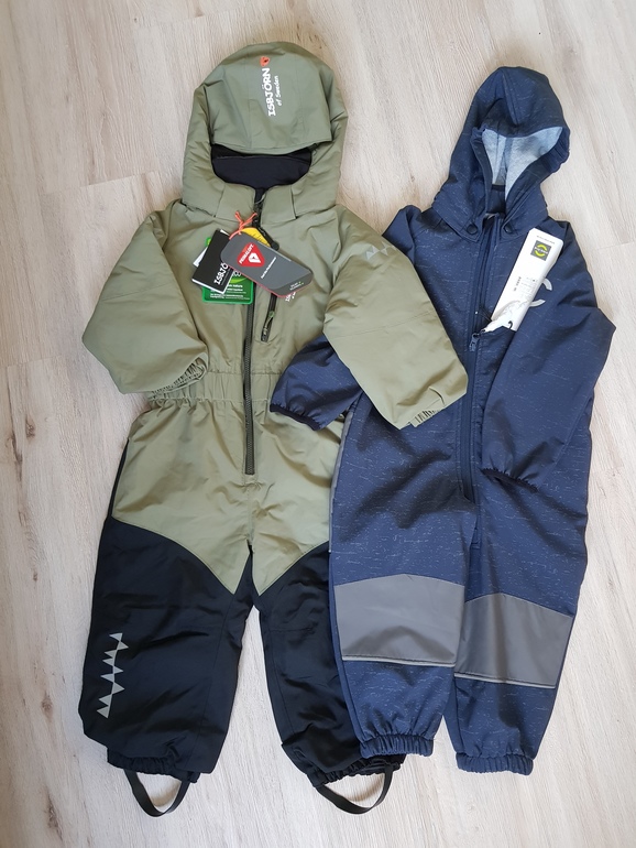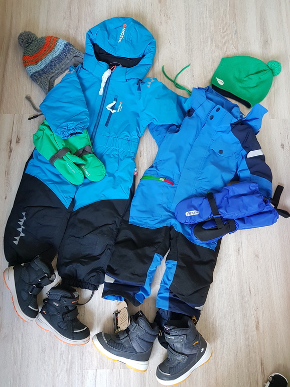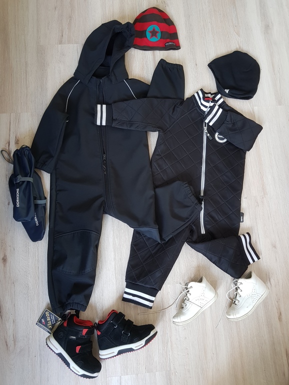 Здесь все просто: основной Isbjorn of Sweden, 86 размер, и на смену донашиваем Дидрик, 80 размер, с прошлой зимы, шапки тоже донашиваем.