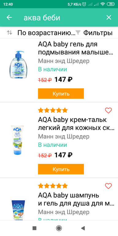 Вы видели в еаптеке такие средства аква беби? Я не видела, захожу туда частенько