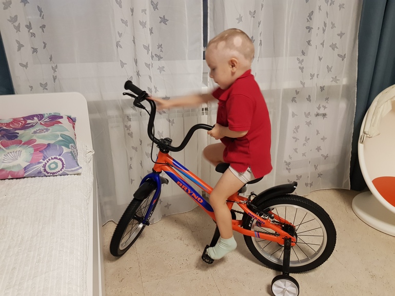 Не знаю еще, и ребенок и велик на даче, но там трава и папа сказал что велосипед ему еще великоват. Дома крутились отлично.