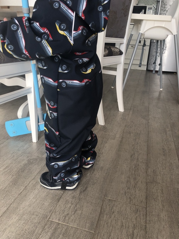 Примерила сегодня наши запасы и сын не дорос до софтшелла Name it 80, хотя рост 83-84 у него. Подвернула рукава и на штанинах шарпей целый.