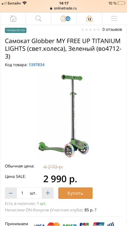 Самокаты глобер в онлайнтрейд