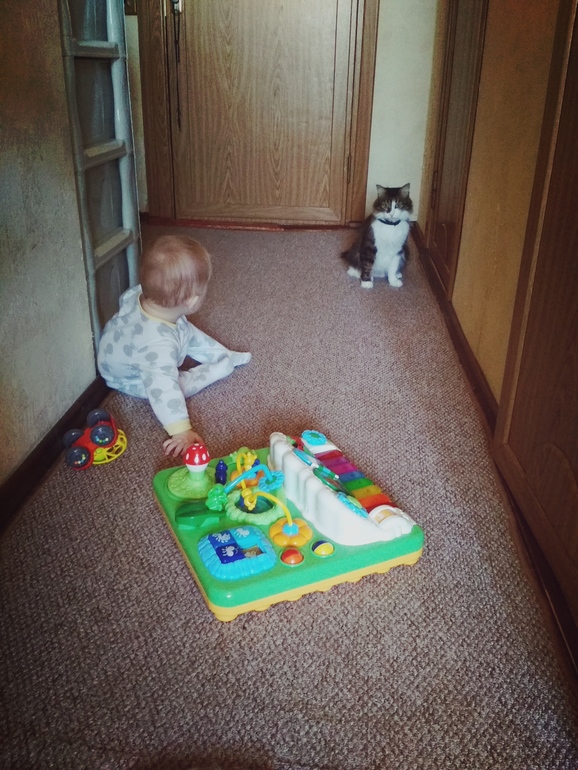 Это и как столик, и как пианино. Фурор у всех 3 моих детей. Пока малыши на животе лежат-сидят, то используем его на полу. 40 минут моего свободного времени - легко!