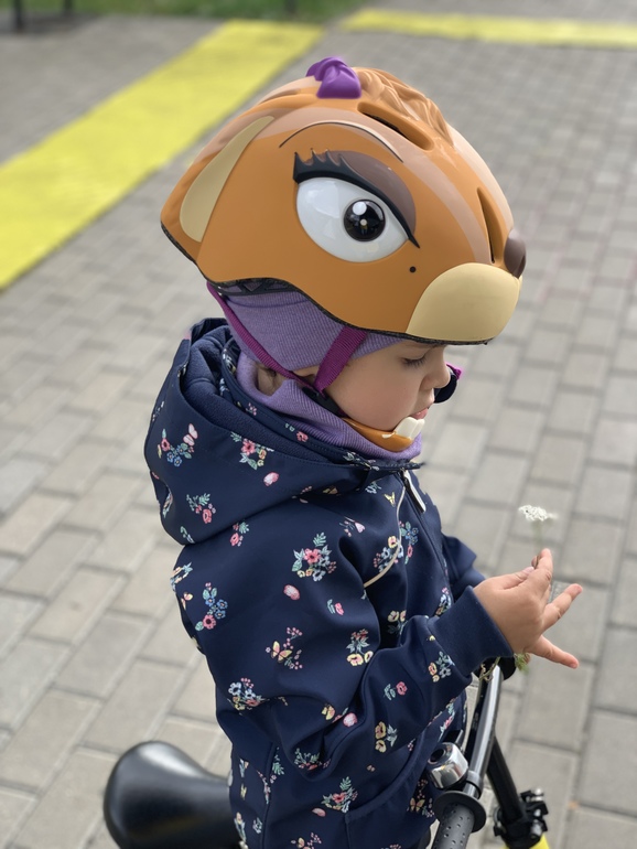 Вот так носим шлем на шапку, голова не потеет. Одеваю софт hm и софт брючки лэсси. В прошлом году была осень такая теплая, что в софте можно было ходить до зимнего комбеза, 80гр носили всего неделю. В этом году кажется в софте прохладно ребенку уже 🤷🏻♀️