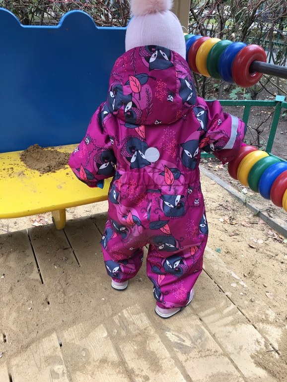 У нас такой.мы сейчас в таком ходим.под ним колготки и водолазочка .нам 1,5.тоже не бегаем....для нас нормально.сеголня обратила внимание,много деток в 160-180одеты.некоторые и теплее.борьшемерит.+6.у нас рост 80.я и взяла 80...я думаю и весну приносим ещё его.дополню про дождь.ходили в дождь,в капюшоне.ребенок сухой и теплый.все везде хорошо закрыто.не промокает .