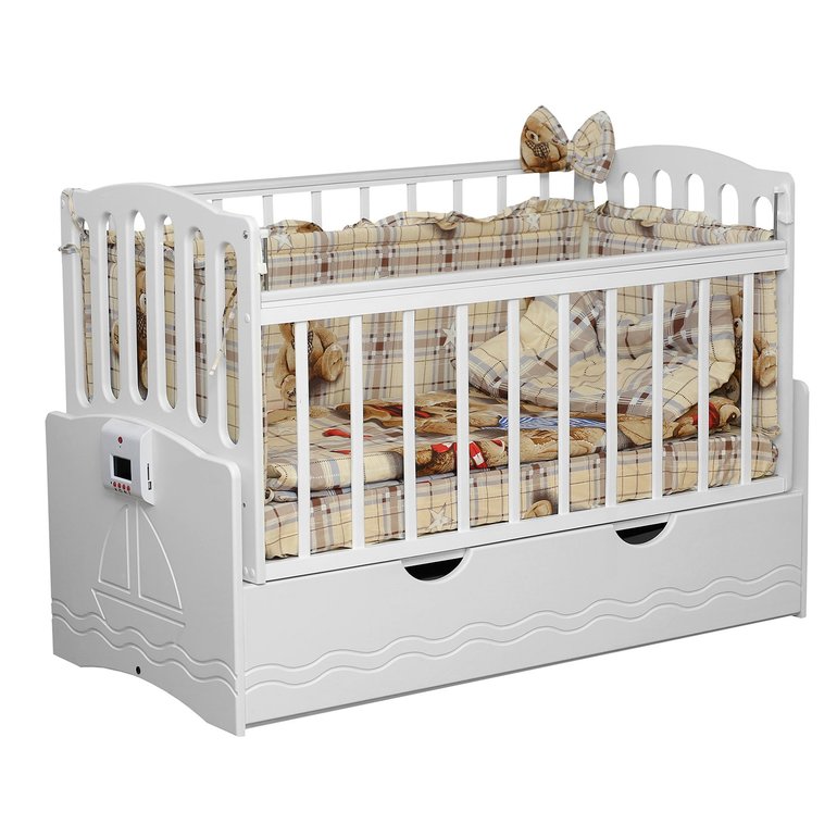 Зачем вам это? В крайнем случае укачать на сон можно в коляске, а вот на постоянку приучать к укачиванию - себе дороже. Дело ваше конечно, а по существу: в таких механизмах опускания-поднимания стенки детки частенько прищемляют пальцы. Также не вздумайте ставить так бортики как на фото - воздух не поступает к ребенку, уткнется носиком и все. И разумеется никаких подушек и одеял. Кроватку выбирают по безопасности прежде всего а не по "функционалу".