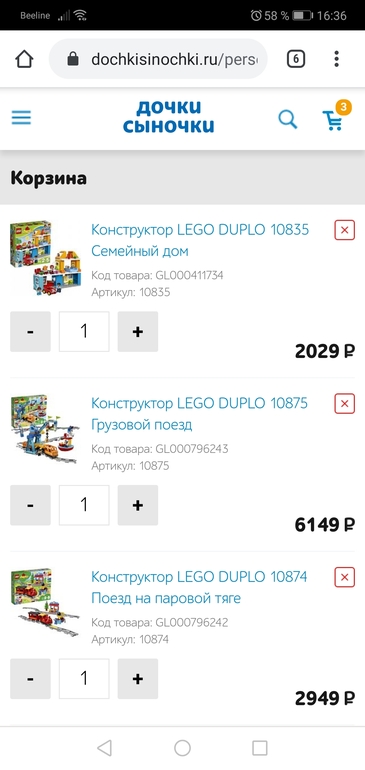 2maria6 в Выбор товаров 6 лет Лего в Дочках и сыночках Распродажи. Скидки. Акции. Доброе утро, неплохие цены, на мой взгляд. Посмотрите еще 20 записей на эту тему Отменить Ответить Дарья Фотоистории Ньюборн А у меня другие цены, большие. Хотя зашла в личный кабинет и в корзину положила, стадия заказа и все равно 6 тыс поезд... 08.10.2019 Ответить 2maria6 Уже нет скидки( 08.10.2019 Ответить Justina У меня нет акции, даже положив в корзину 08.10.2019 Ответить 2maria6 Убрали уже акцию, видимо, у меня тоже нет 08.10.2019 Ответить Lina Поменяли цены уже. 08.10.2019 Ответить Lёl@ У меня 6159 цена ( 08.10.2019 Ответить 2maria6 Войдите в личный кабинет и добавьте в корзину 08.10.2019 Ответить Lёl@ Сделала, и зашла и добавила, видимо на Киров не распространяется ( 08.10.2019 Ответить 2maria6 Сейчас посмотрела, уже и у меня нет(( 08.10.2019 Ответить Lina А как у вас такая цена получается? У меня поезд 6159 руб. 08.10.2019 Ответить надежда И когда в карточку товара заходите? 08.10.2019 Ответить Светланочка В корзину положите) 08.10.2019 Ответить Lina Получилось когда зашла в личный кабинет! Спасибо) 08.10.2019 Ответить 2maria6 В корзине меняется, да и , когда в сам товар захожу 08.10.2019 Ответить Perplexus Epic Доп скидка в хм Чаты Беременных Выберите чат: Январята-2026 Февралята-2026 Мартята-2026 Апрелята-2026 Майчата-2026 Июнята-2026 Июлята-2026 Августята-2026