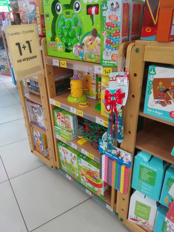 Распродажи. Скидки. Акции.С 17-22 окт на многие позиции 1+1. В Гудзоне, например, Батат, ELC, ABC, малышковые, конструкторы... Некоторые наборы Магформерс, наборы для творчества, муз инструменты, некоторые машины. Некоторые игрухи Батат с 50% скидкой просто. На лего не распространяется, на него просто небольшие скидки.
