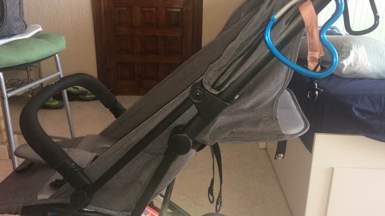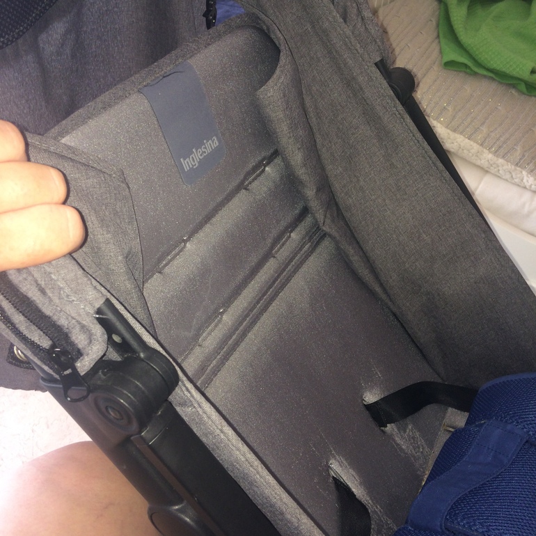 Тогда я стала пристёгивать спинку к раме (на ней есть хлястики с кнопкой чтобы фиксировать часть спинки в сложенном виде), но тк это не предусмотрено конструкцией, спинка получалась выгнутой теперь уже во внутрь и часто отстёгивалась, в общем дотерпела с трудом до момента когда смогу вернуть эту «прелесть» в магазин!