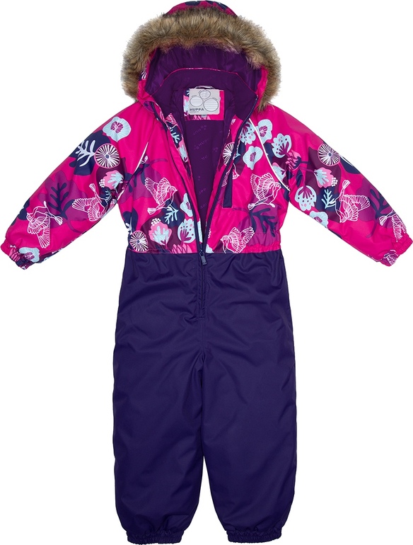 У дочки комплект темно-фиолетовые штаны и такая же куртка в розрво-белые цветы, розовая куома (не олнотонная, с узором, но яркая), розовые варежки (бледные и яркие) и 2 шапки - белая и светло-розовая (к каждой шапке шарф), смотрится очень неплохо