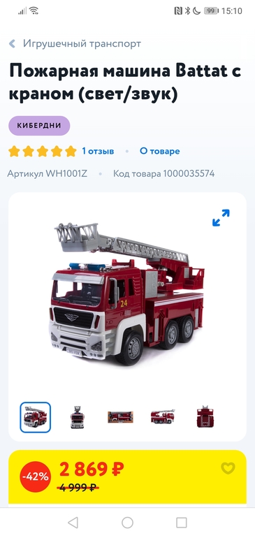Ещё такая Интересная машинка, сенсорные кнопки, озвучены мотора, сигнала и т п. Плюс сама ездит. Батареек хватает на доооолго. Качество. Наша за два года как новая. Сыну 4,7 играет до сих пор.