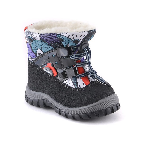 Такому маленькому лучше валенки с плотным натуральным мехом. В грязь особо ещё не лезет, так что промокнуть не должны.