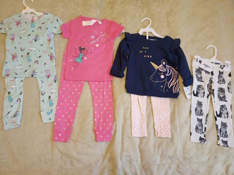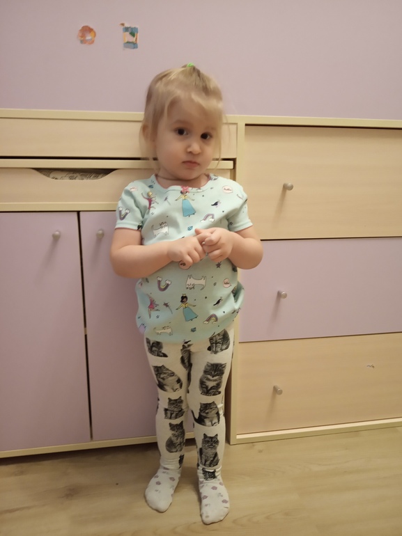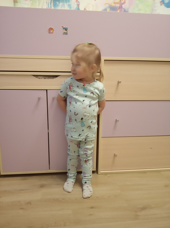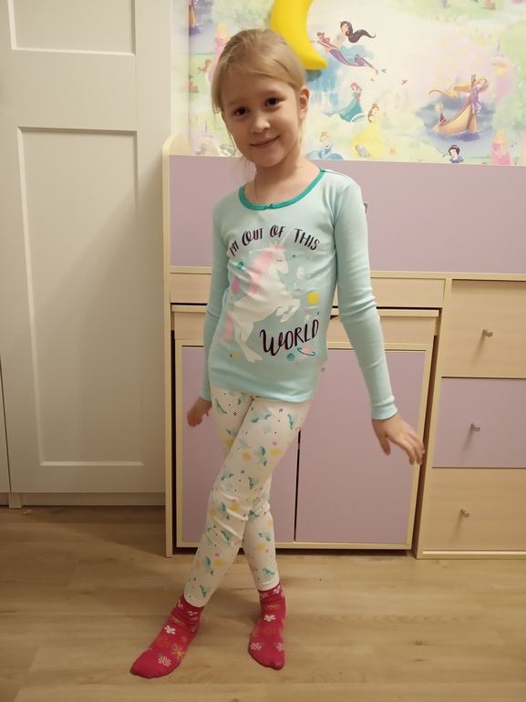 И для маленькой пижамки 3т, костюм и лосины с котятами 2т. Она у нас дама миниатюрная, поэтому ничего не мало, пижамки с запасом
