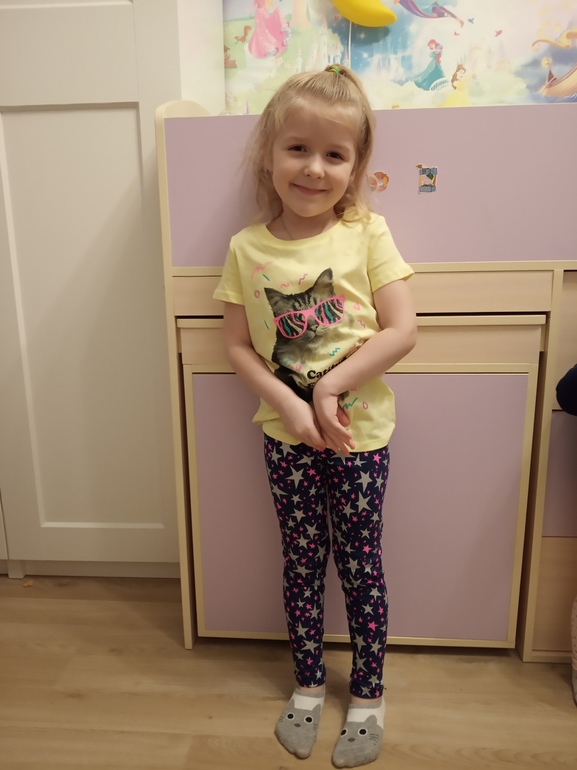 Тут вообще не понятно. Футболка 4-5 большая, лосины 6т, даже не большие