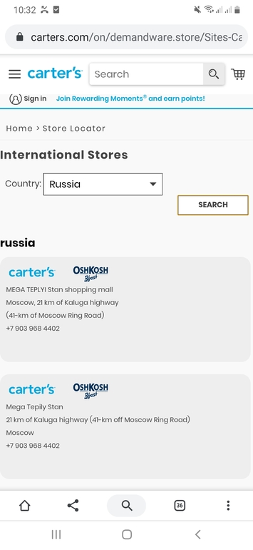 Адрес магазина на тёплом стане есть в списке адресов официальных магазинов на картерс ком. Так что магаз официальный, теперь сомнений нет. Именно на американском. Кто ищет, тот всегда найдёт