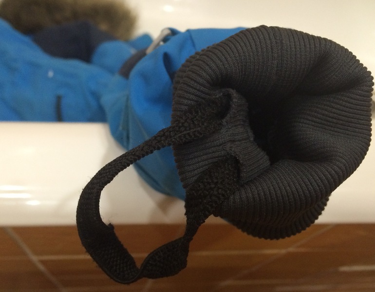 У нашей куртки дидриксонс такая петля именно для пальца. Но у вас на фото она какая-то длинная. Или просто так кажется?