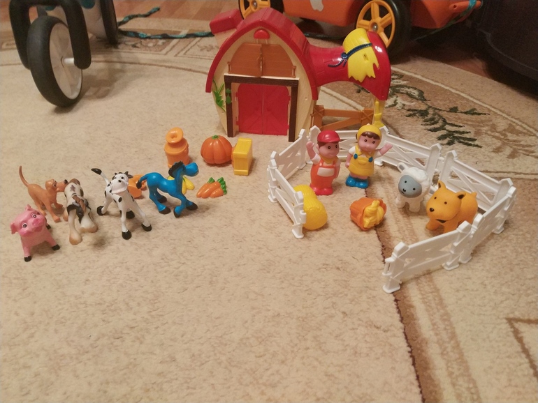 Нам подарили, написано мейд ин чина)). Фигурки животных слева куплены в магнит косметике, хорошо подошли к ферме