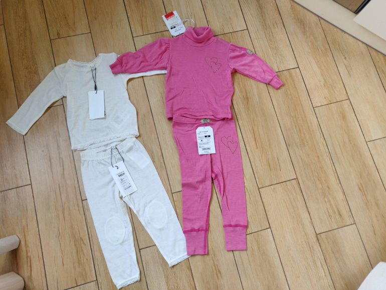 Остальное термобелье из шерсти. Есть два вот таких разделька. Белый - Name it, розовый - Янус. Оба 100 % мериносовая шерсть. В целом бренд нейм ит мне по качеству кажется лучше януса. Но смущает, что он в небольшую дырочку м у него нет горловины.