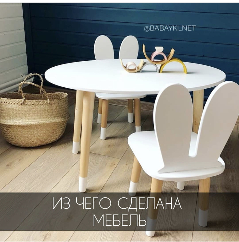У нас из икеи стол и стул Криттер, краска местами откололась, но всегда можно обновить (подкрасить), что и делаем периодически. Детки быстро растут, можно потом выбросить без сожаления. А на стол мы сразу заказывали оргстекло, поэтому поверхность стола идеально белая:)