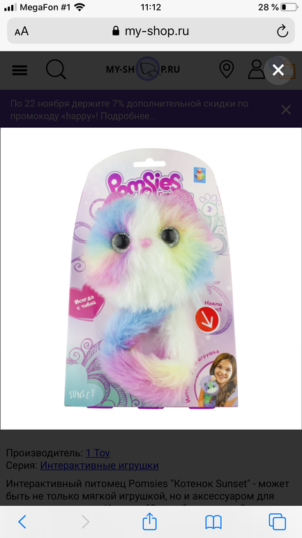 Купила в детмир 780. Здесь пост был. Купила мелкой, а старший отобрал, перед сном развлекается. Она урчит, ест, чихает, целуется и пукает, вроде больше ничего не умеет. Ещё первый раз купила с витрины, она не работала, обязательно проверять.