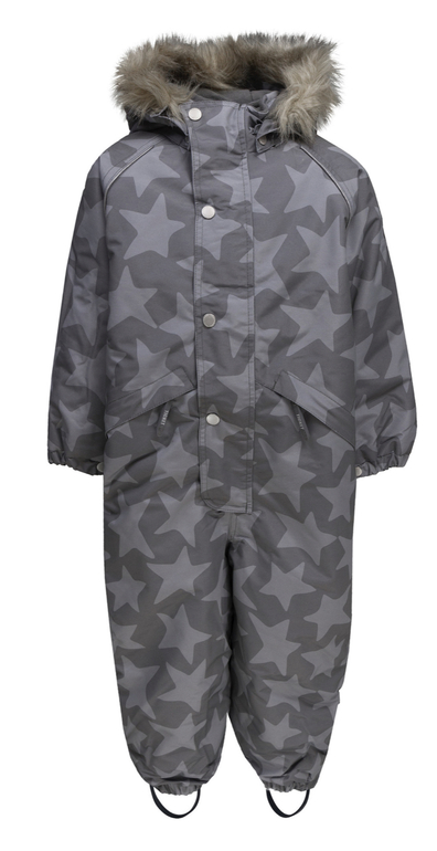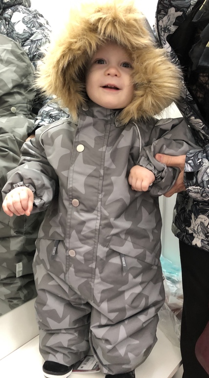 Был такой чёрный с серыми звёздами, очень тёплый, внутри флис, даже в ногах, поэтому сыну неудобно было самому одеваться: ноги застревали, не проскакивали внутрь. Снег, грязь, все с него скатывается и легко стирается салфеткой. После сезона носки остался в идеальном состоянии.