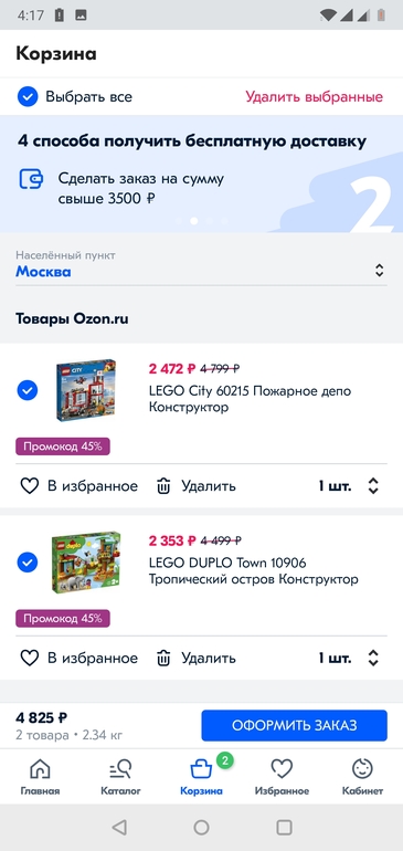 - Добавьте в корзину от 2-х товаров с акционной страницы