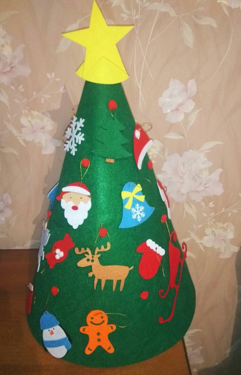 Очень порадовала елка из фетра,взяла домой и на подарки,дочь в восторге от этой декорации