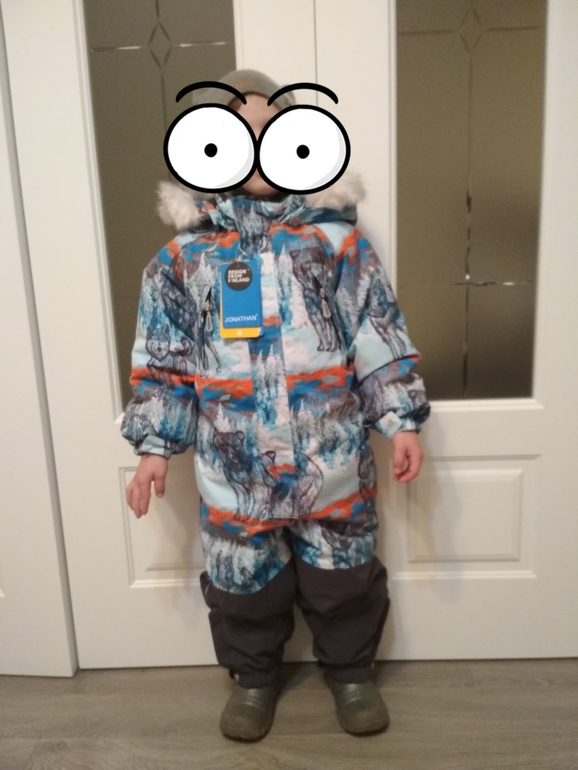 Он огромный сейчас. Штанины длиннее ног, плечи висят. Конечно сейчас носить не будем. Ниже фото комебезах который у сына сейчас, смотрится гораздо аккуратнее. Надеюсь через год будет лучше.