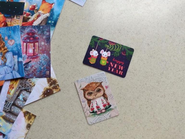 Мини открытка с совушкой стоила вообще 8 р. Найду куда пристроить после НГ. Мышек мне видимо положили в подарок.