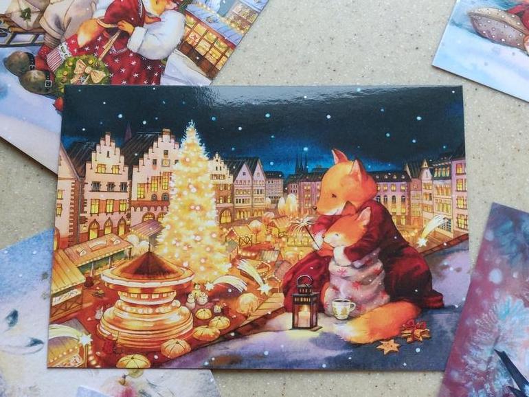 Сами открытки я сначала увидела на новогодней ярмарке в Москве. Мне они очень понравились. Но стоили 60 рублей шт. Я купила только одну. Дома рассмотрела ее получше и увидела ссылку на их сайт.