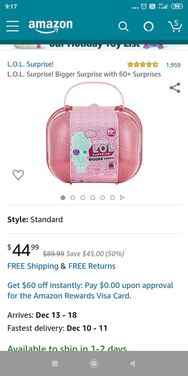 В наличит есть, но промо на 15% уже не действует. Без него 949руб. https://www.mandco.com/lol-surprise-hairgoals-doll-collectable-toy-multi/344334501700000.html?awc=1685_1577474451_06e24266cd1182de38d7b434d32e9ddf&utm_source=adgoal&utm_medium=affiliates&utm_campaign=Affiliate+Window