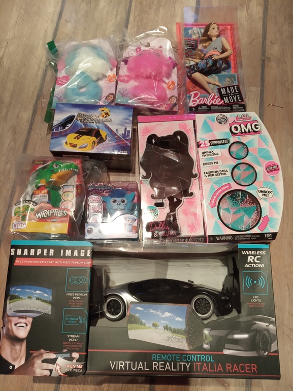 Интерактивные браслеты по 300-400р, для мальчика 600р. Барби движения около 1000р, лол большая с маленькой набор около 3000р (подруге брала), машинка- робот трансформер желтая со звуком и светом и ездит по стене за 1500р, большая машина с камерой и вирт очками 3500.
