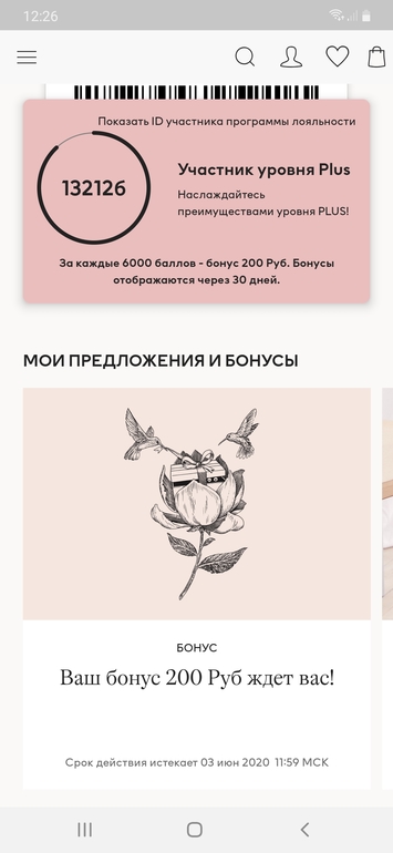 У вас есть баллы, а не бонусы. Баллы по сути сумма, на которую вы купили товаров. Бонусы кажется отображаются не сразу, а через какое-то время, спустя достижения нужного количества баллов