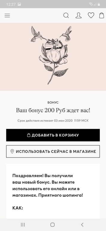 Вы в личном кабинете кликните на сам бонус, и нажмите добавить в корзину. Он у Вас уже будет отображаться в корзине. Через саму корзину тоже так и не смогла добавить, пишет нет бонусов.