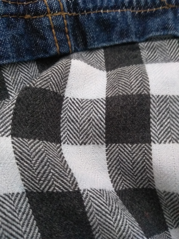 Добрый день. А что за джинсовый комбинезон с под4ладом в клетку, какая это фирма? /