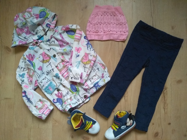 Перед этим вот такой комплект был, шапочки в цвет бабушка нам вязала, на ногах были минимен ботинки, их продала уже, в этом году Вупи на флисе будут и потом Суперфит высокие кроссовки докуплю