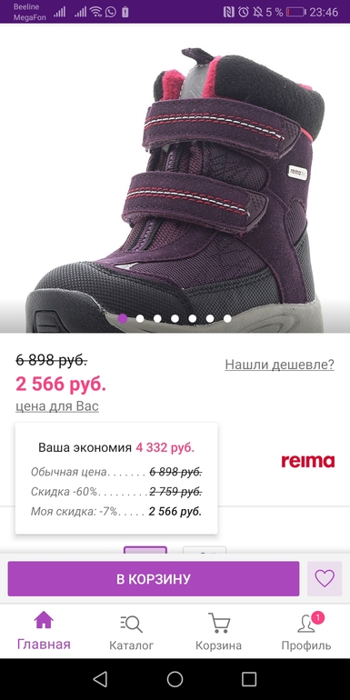 Детская обувьЗимние ботинки рейма с моей личной скидкой в 7% вышли в 2231р. Прекрасная цена!