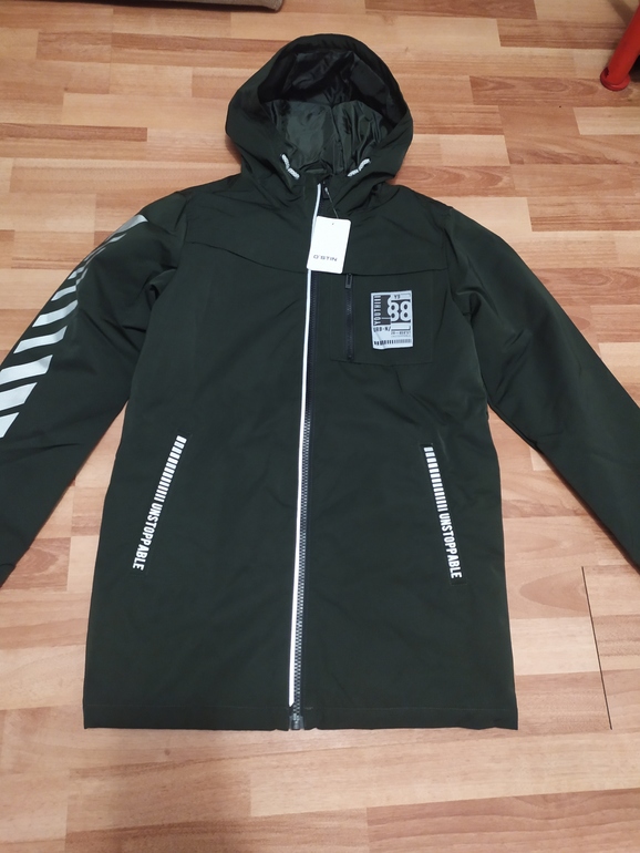 В наличии имеем мальчика 12-ти лет ростом около 160 см и весом около 56 кг. На будущую весну и, надеюсь, на осень заказала на Ламоде парку O'stin размера 164. Понравилась плотная ткань, и надписи нанесенные светоотражающей краской. Ну и цена, конечно. При заказе она была 1450 рублей, еще и кэш получу небольшой. Сейчас парка еще великовата, конечно. Рукава длинны - доходят до середины ладони. Длина парки -79 см, ширина - 51 см, длина рукава - 59 см.